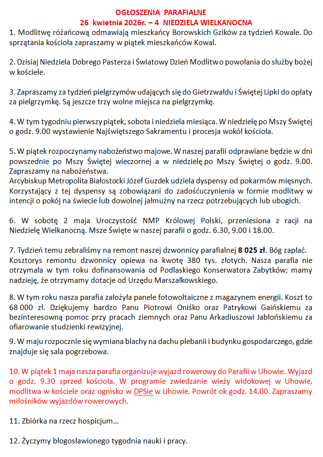 OGŁOSZENIA PARAFIALNE 26 kwietnia 2026r.