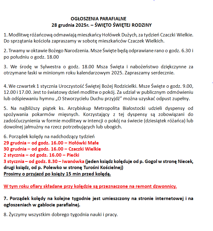 Piątek 8.00 - 9.00, 16.00 - 17.00