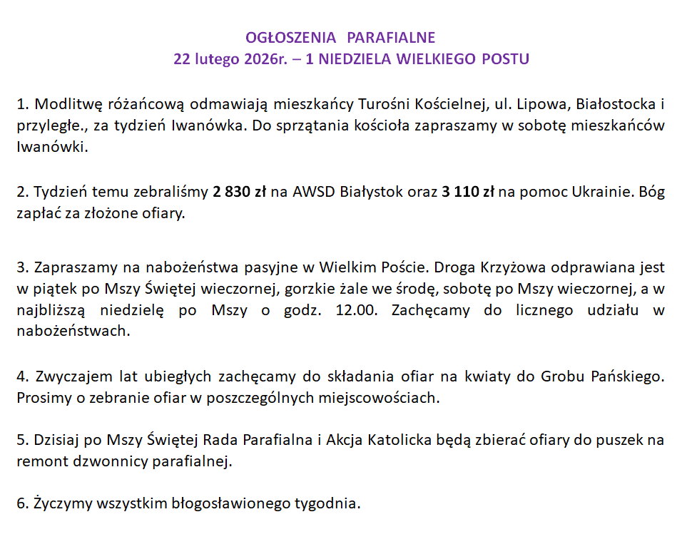 OGŁOSZENIA PARAFIALNE 22 lutego 2026r.