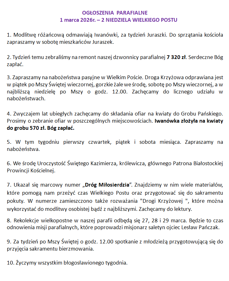 Piątek 8.00 - 9.00, 16.00 - 17.00