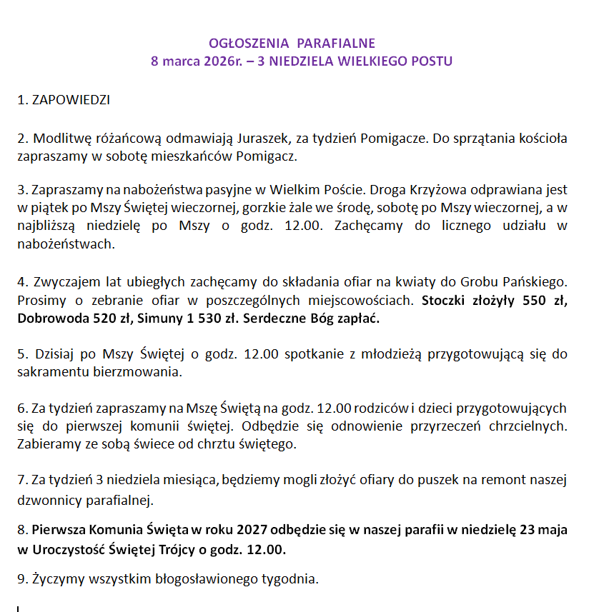 Piątek 8.00 - 9.00, 16.00 - 17.00