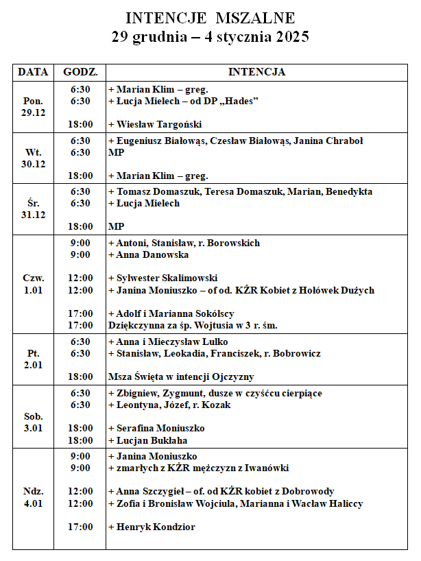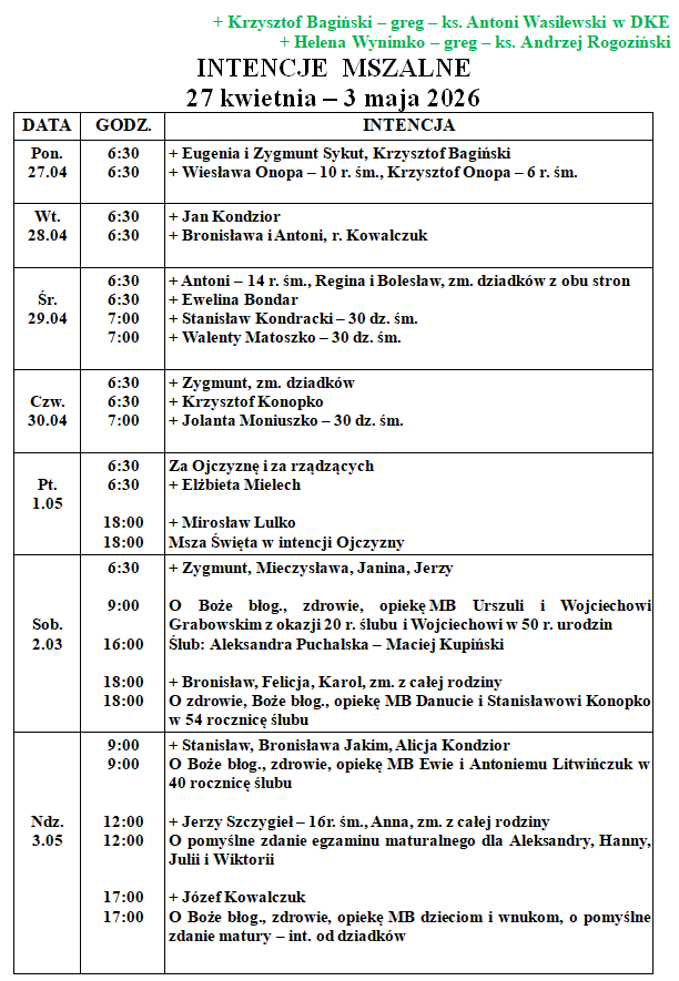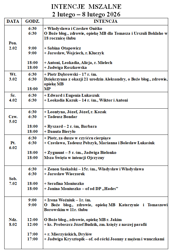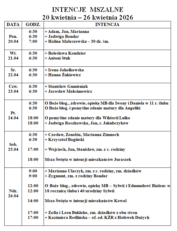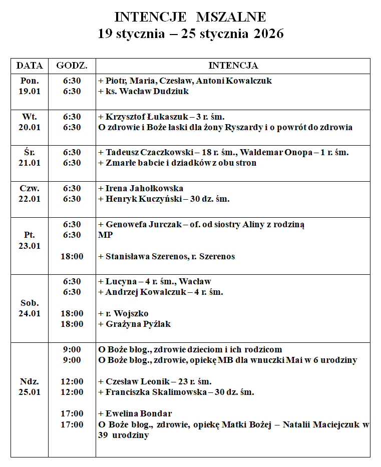 Piątek 8.00 - 9.00, 16.00 - 17.00
